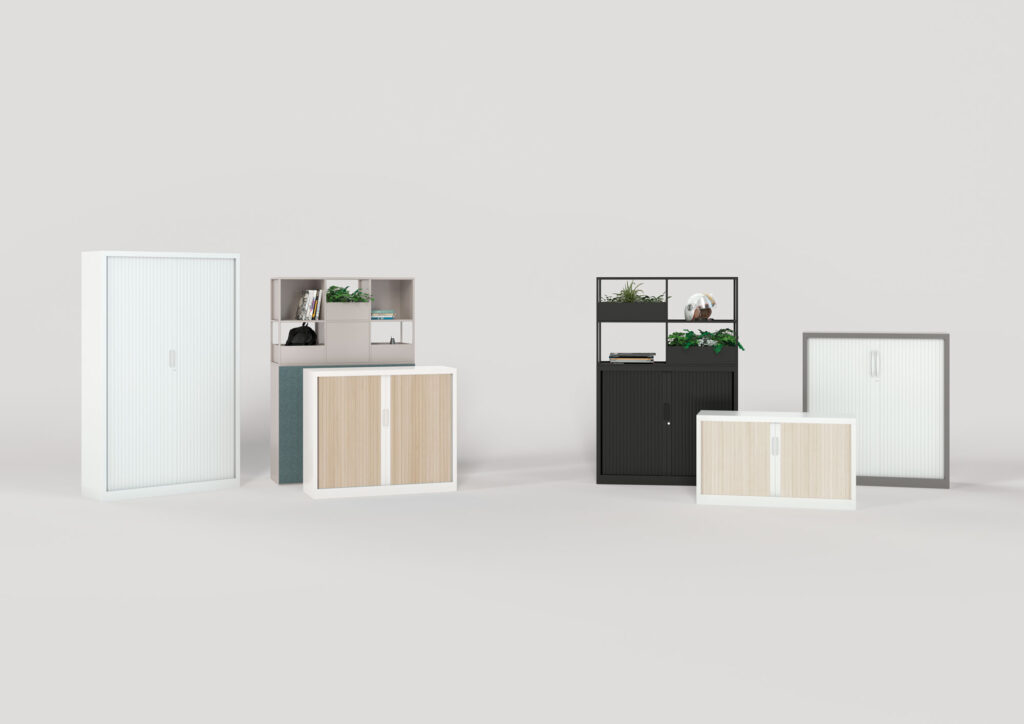 Les armoires à rideaux Mobimétal réduisent considérablement l’encombrement de vos espaces.