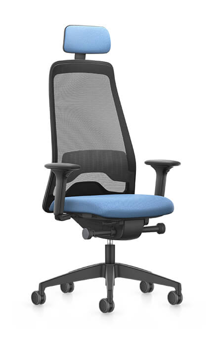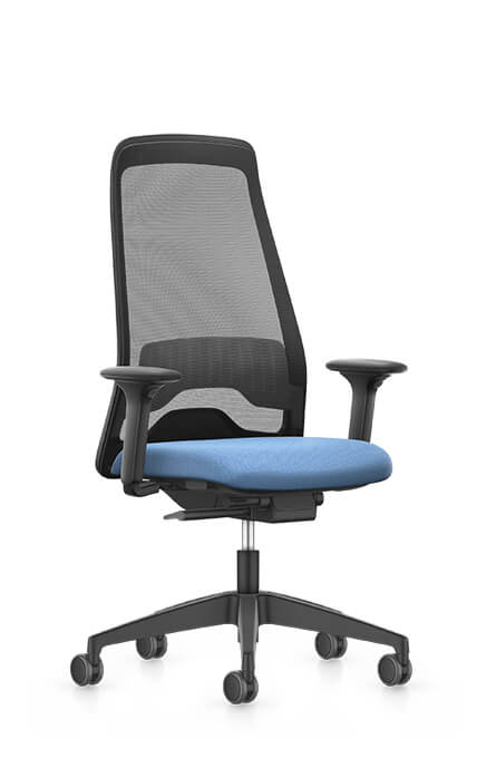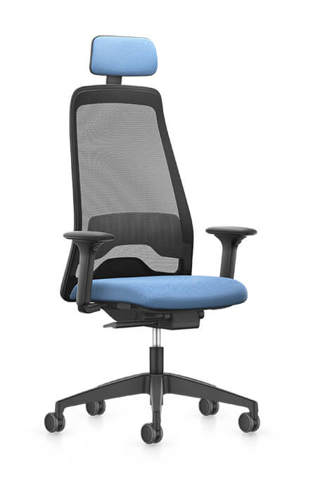 Plusieurs qualités de tissu et cuir en de nombreuses couleurs. Le dossier en résille est aussi disponible en différentes couleurs.