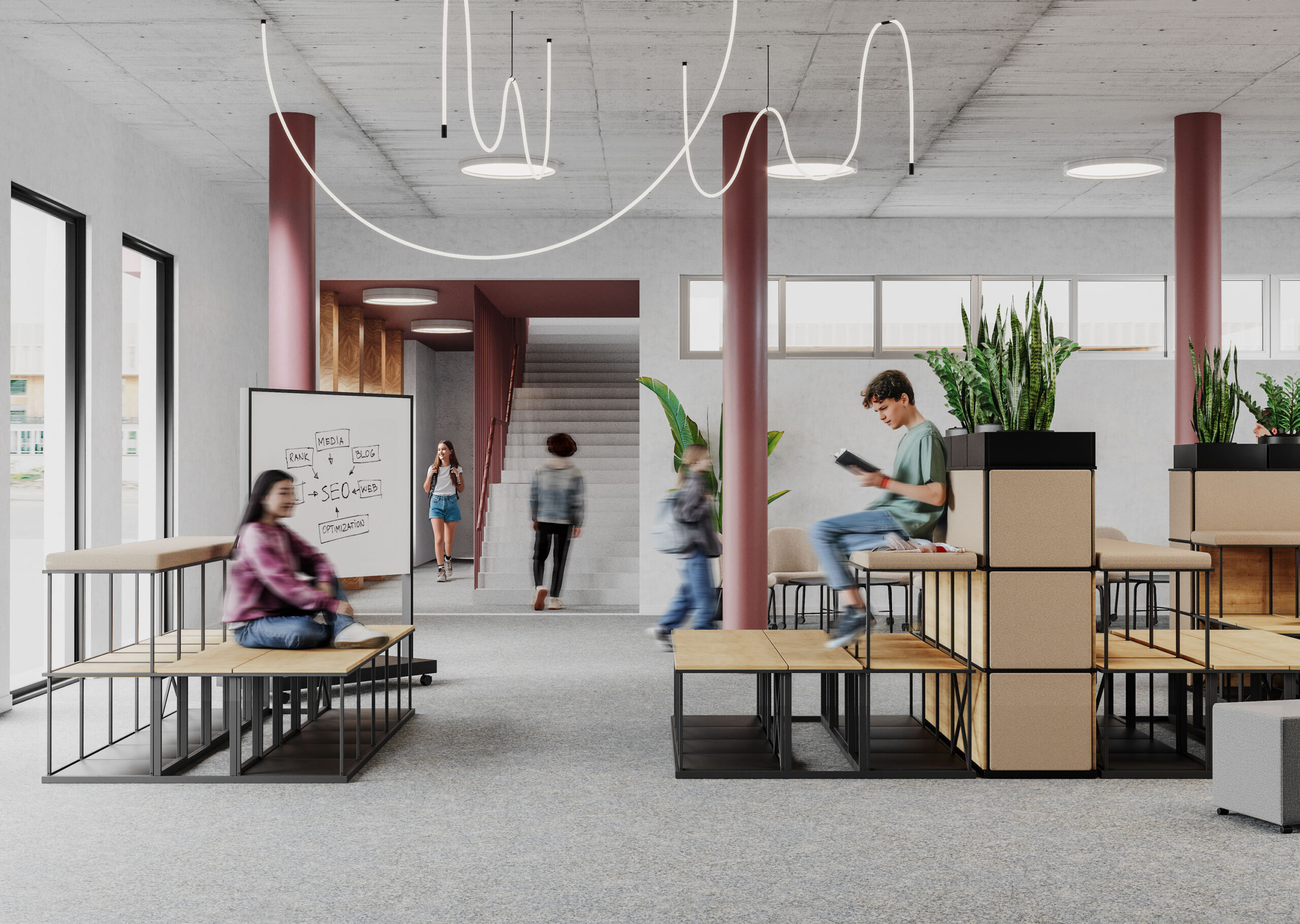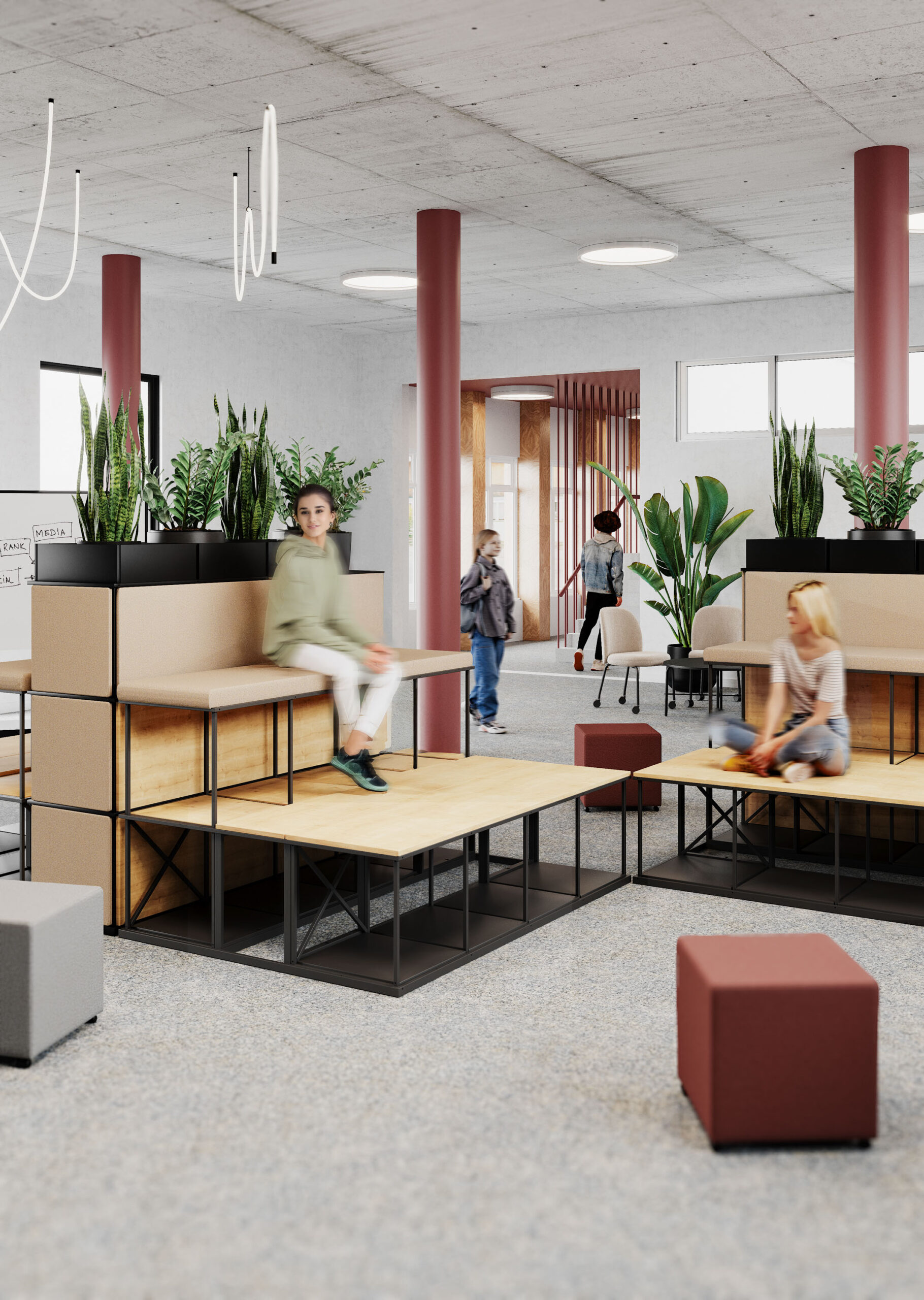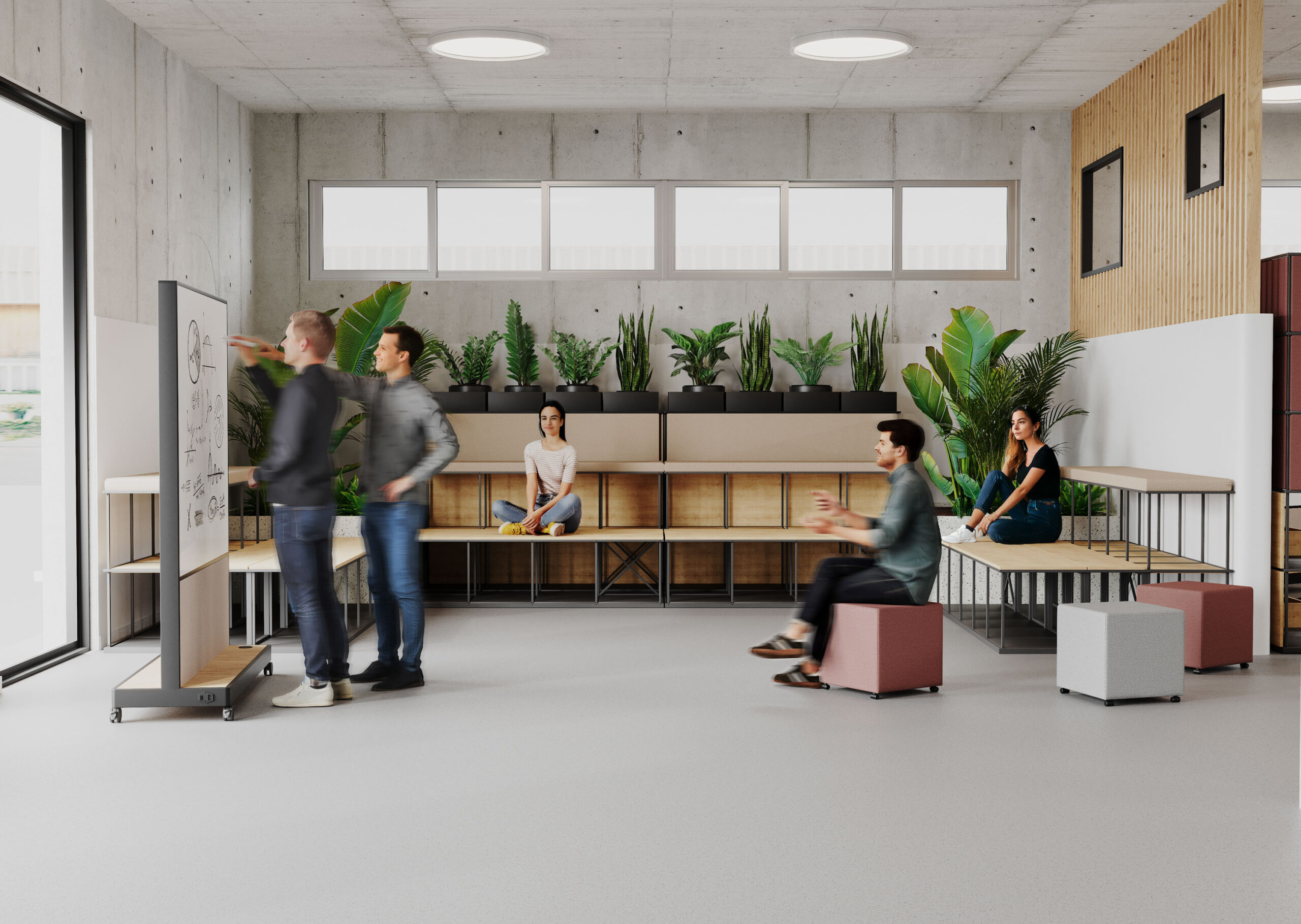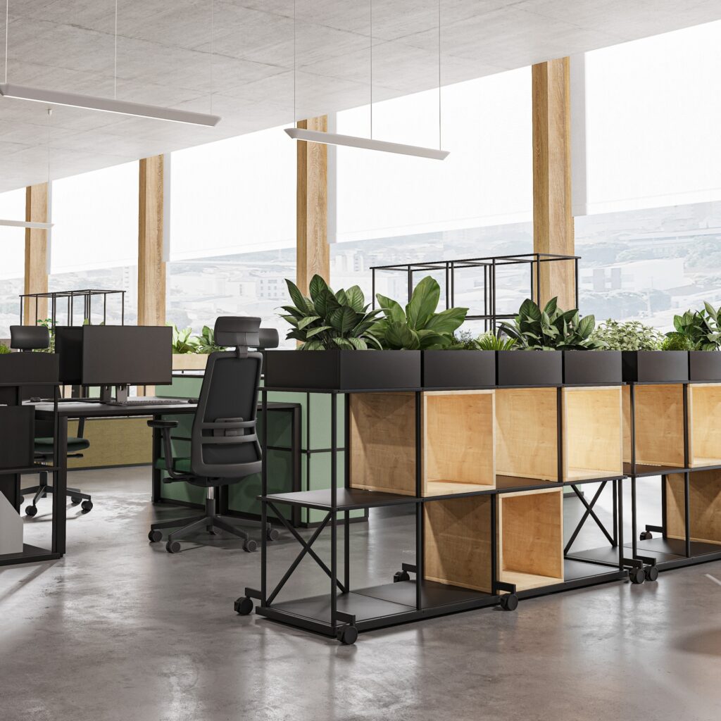 Un sytème modulaire de rayonnages fonctionneles construits en acier. Chaque rayonnage peut avoir des dimensions et une forme unique.