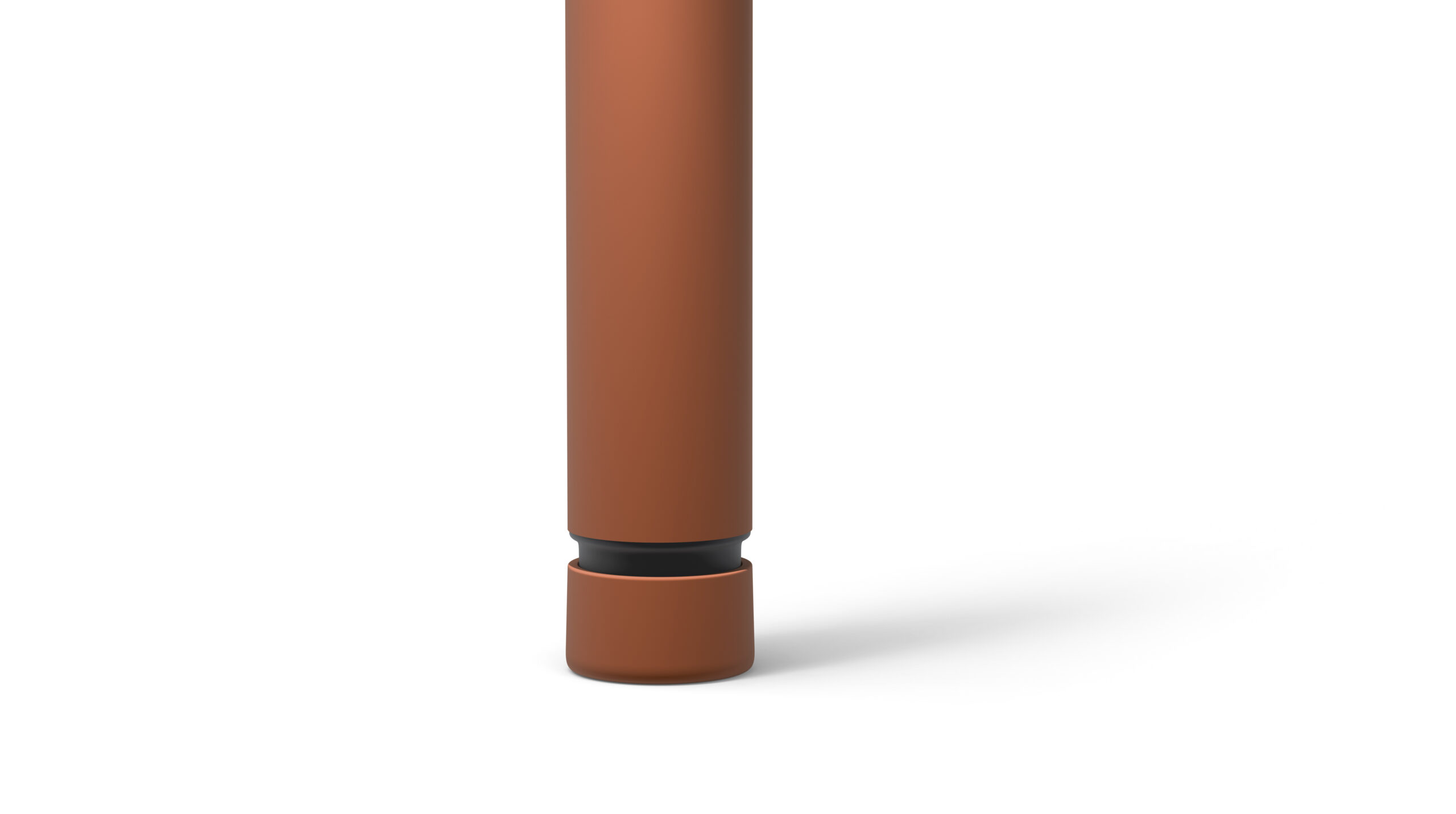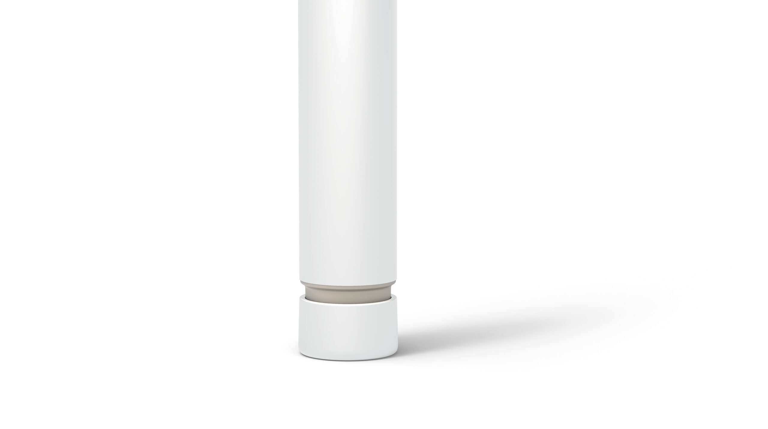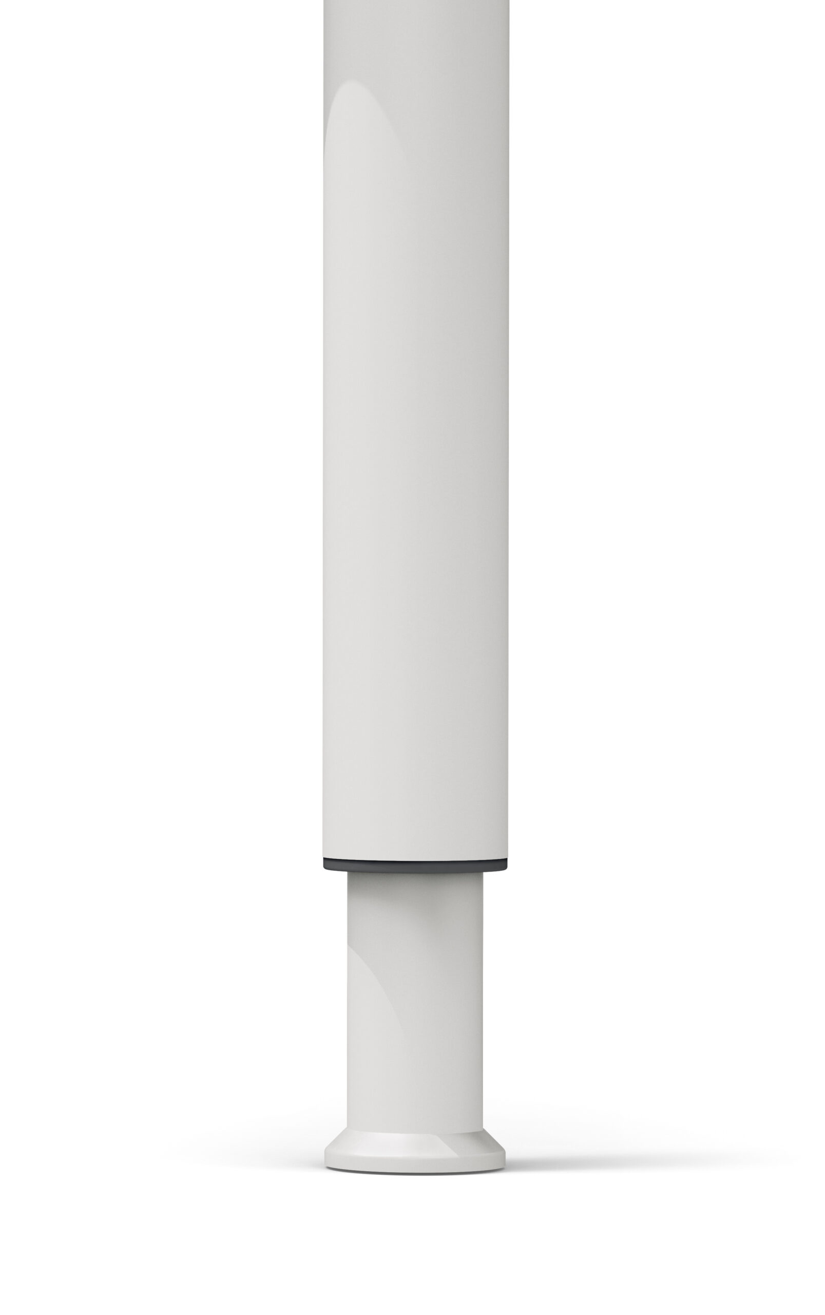- Piétement rond fixe : en tube d’acier Ø 60 mm, peint époxy dans 3 finitions, avec platine 150 x 150 mm et patin design avec vérin de réglage (0 à 20 mm).